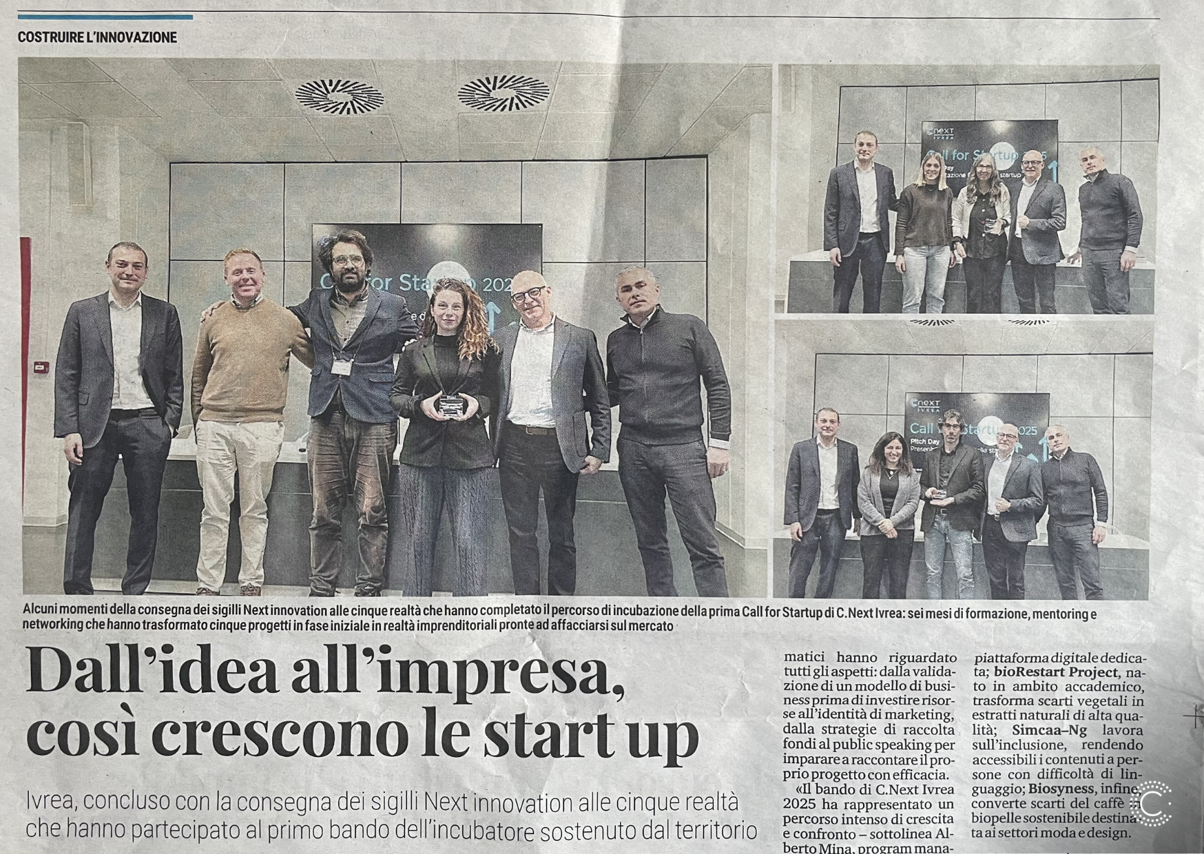 La Call for Startup 2025 lanciata da C.NEXT Ivrea ha raccolto 30 candidature da tutta Italia. Tra maggio e giugno 2025, una commissione di esperti aveva selezionato i cinque progetti più promettenti: realtà diverse per settore e vocazione, ma accomunate dalla determinazione a trasformare un’intuizione in impresa.